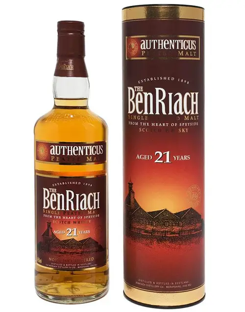 Just 4,800 bottles of this 21 year old Authenticus are released annually, this BenRiach whisky exudes a dark peated power and well balanced sweetness with underlying wood notes.